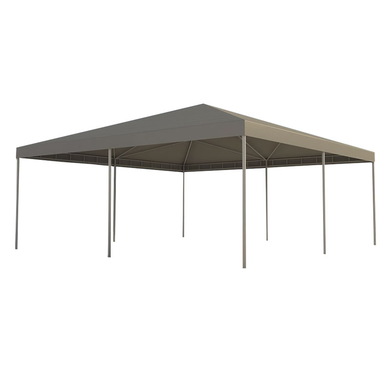 A Tenda Piramidal possui uma galvanização de alta resistência, montada por um moderno sistema de encaixe e unida com parafusos e conexões em aço. A Lona da Tenda Piramidal possui emendas unidas por solda eletrônica e rádiofrequência, reforçada com material de maior espessura nos pontos de tensionamento e ruptura, fabricada em PVC calambrado, com reforço em poliéster impermeável, blackout solar, anti-chama e anti-mofo, garantindo maior durabilidade do produto.