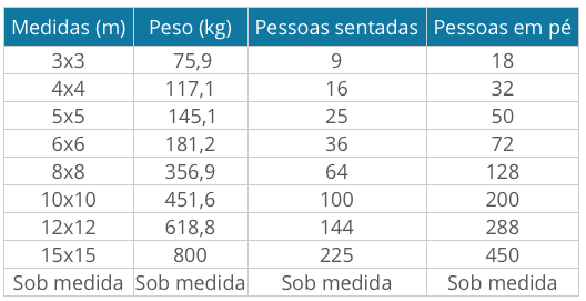 Medidas especiais da Tenda Piramidal também são fabricadas sob-encomenda.
